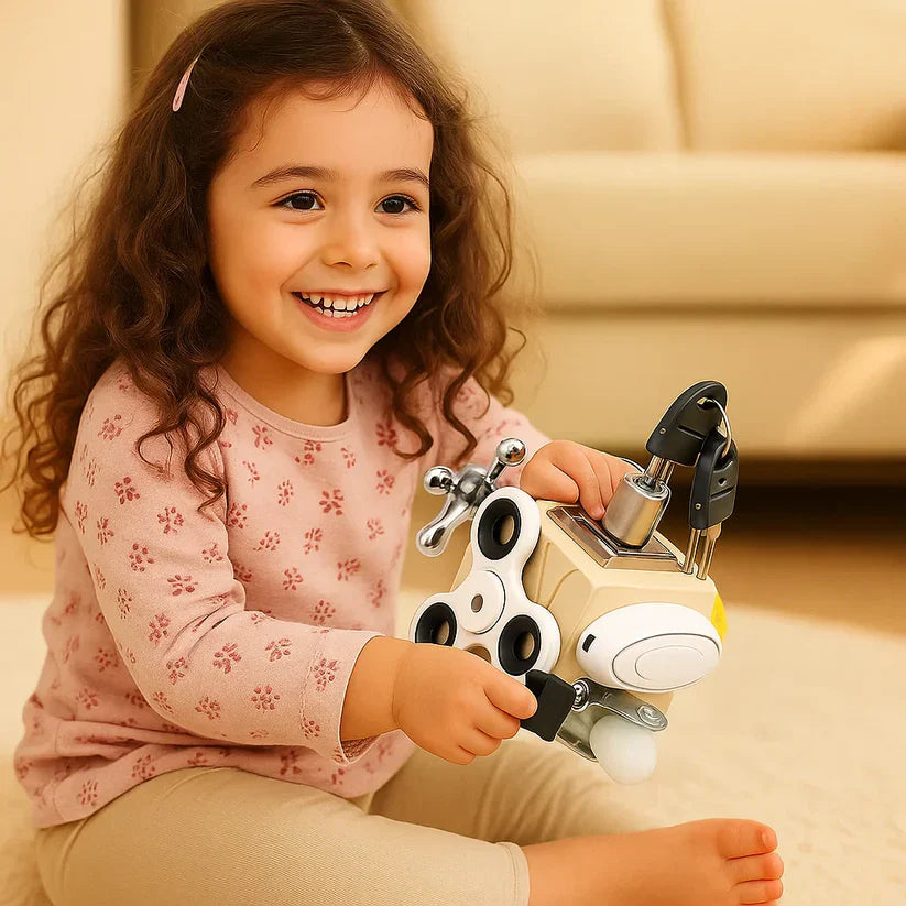🧠 Rozvíjí logické myšlení: podporuje schopnost řešit problémy prostřednictvím různých zámků a uzávěrů.